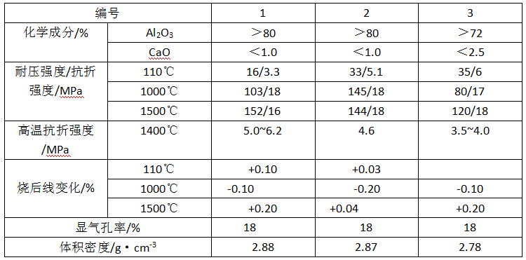 表1-1 氧化鋁纖維增強澆注料的性能