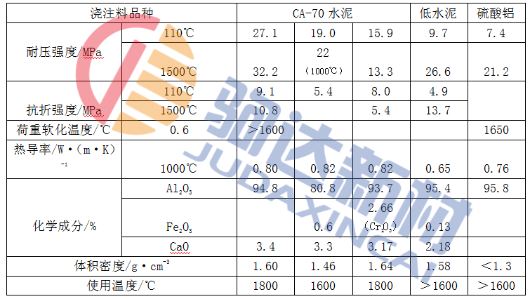 氧化鋁空心球耐火澆注料用的結(jié)合劑,主要有CA-70或CA-80水泥、結(jié)合粘土、硫酸鋁和硫酸鋁等,用工業(yè)氧化鋁粉或剛玉粉等材料作耐火粉料,其細(xì)度為小于0.09mm的占90%以上;空心球最大粒徑為5mm,采用自然級配或分級級配。另外,應(yīng)摻入外加劑后外加物,以提高性能。表1-2為氧化鋁空心球澆注料的性能。
