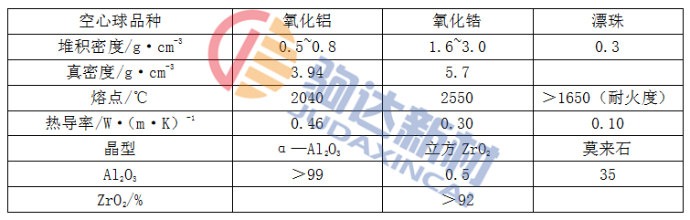 人造氧化鋁空心球品種有氧化鋁、氧化鋯、莫來石質(zhì)、鋁鎂質(zhì)和鎂鉻質(zhì)等,在耐火澆注料中應(yīng)用最多的為氧化鋁空心球;粉煤灰漂珠也是一種空心球,是由粉煤灰中提取的,是生產(chǎn)輕質(zhì)磚的良好原料,也是配制耐火澆注料的良好外加物。表1-1為空心球的主要性能。