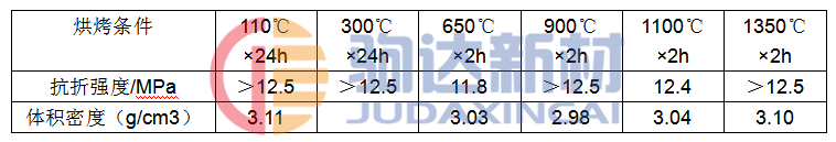 表5 烘烤不同溫度后澆注料的體積密度 g/cm3