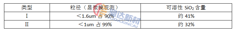 SiO2微粉的性狀 表3