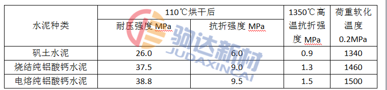 不同水泥高鋁質耐火澆注料的性能 表4