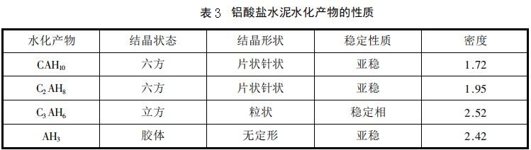 鋁酸鈣的各種主要水化產(chǎn)物的性質(zhì)如表3所示。